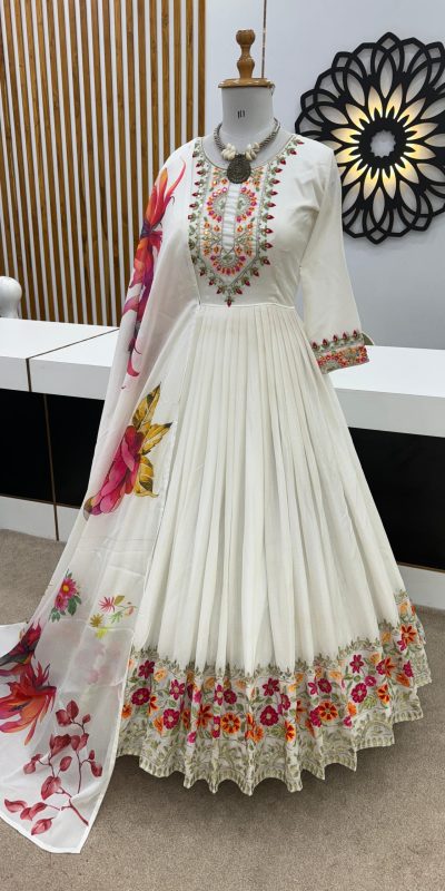 ZF 385 White Color Chinon Silk Embroidery Sequence Gonw Casual, Wedding, Party, Festive, Events Etc. Expected Delivery 4-6 Working Days @2099/-