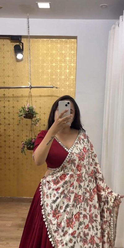 Fine Maroon Color Pure Cotton Sequence Lehenga Choli