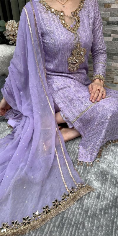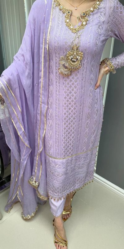 AD157 White & Violet Color Chinon Silk Embroidery Sequence Salwar Suit Wedding, Party, Festive, Events Expected Delivery 4-6 Working Days @ 2199/-