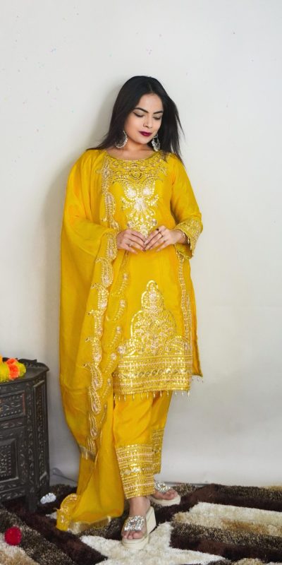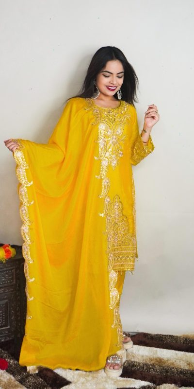 SRK 5149 Yellow Color Pure Chinnon Silk Embroidery Sequence Salwar Suit Wedding, Party, Festive, Events Expected Delivery 4-6 Working Days @ 2049/-