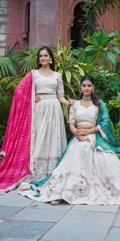 1 Lehenga :: 1 Blouse :: 1 Dupatta :: Drawstring with Zip