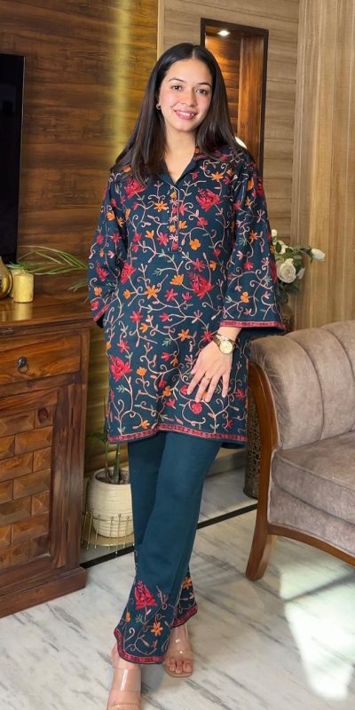 | Fabrics | Top : Rayon with inner Work : Chain-Stitch Embroidery Work With Thread Work Length :-38 Pent:- Rayon Work :-Chain-Stitch work Length :-39 Size. :- Free (Full stitched with elastic) |