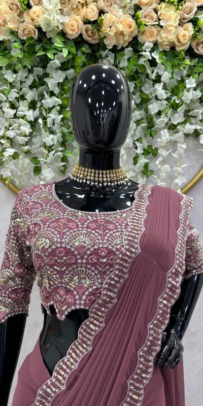 KD 477 Peach Color Faux Georgette Thread Sequence Work Saree Casual, Party Wear, Wedding, Events Etc. Expected Delivery 4-6 Working Days @1849/-