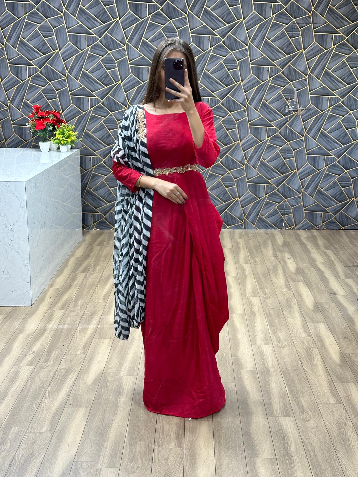 | Fabrics | Gown : Chinon Inner:- Micro Cotton Work:- Hand Work Dupatta :- Fox Georgette & Digital print Dupatta:- 2.25 Meter |