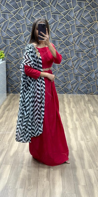 PC 370 Pink Color Chinon Plan Gown Dupatta Digital Print Gown Casual, Party Wear, Events, Festivals Wear Etc. Expected Delivery 4-6 Working Days @1999/-