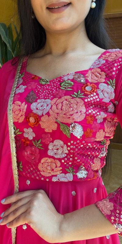 Ram 007 Pink Color Fox Georgette Embroidery Lace Work Gown Casual, Wedding, Party, Festive, Events Etc. Expected Delivery 4-6 Working Days @2049/-