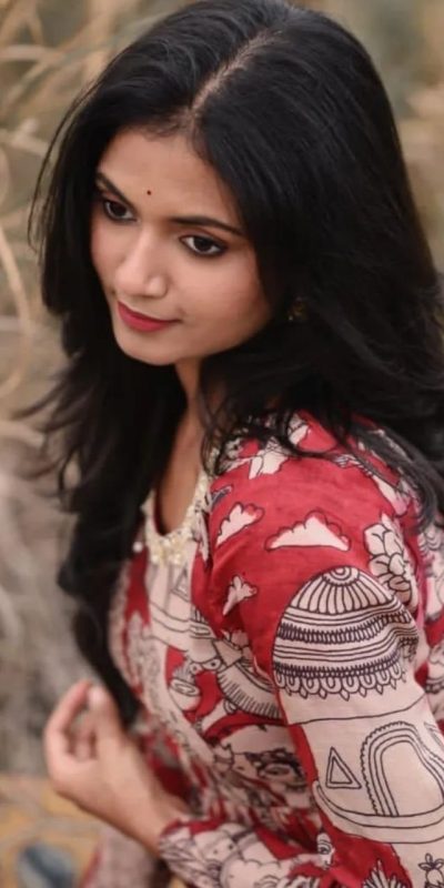Fabrics Gown :Chant Crepe Work:- Kalamkari print Inner:- Micro Cotton                                                                                                                                                                      (Fully Stitched)                                                                                                                                                                          Dupatta:-Chinon Work:- 4 Side Samosa Lace Size:- 2.30 Meter