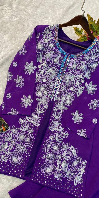 LG 1850 Violet Color Chinon Silk Embroidered Sequence Saree  Party, Wedding, Festive, Events Etc., Expected Delivery 4-6 Working Days@1999/- Only