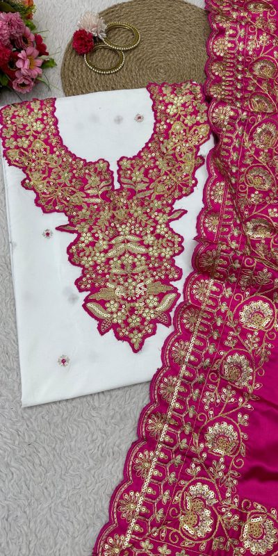 KD 1447 White & Pink Color Silk Thread Sequence Salwar Suit Casual, Party, Wedding, Festive, Events Etc. Expected Delivery 4-6 Working Days @1849/-