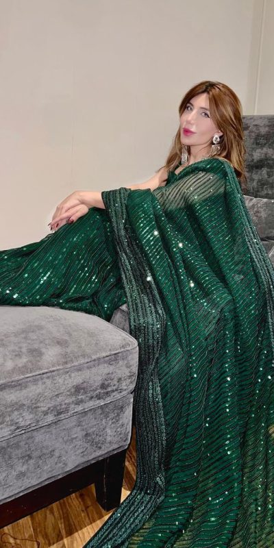 JR 620 Green Color Fox Georgette Embroidery Sequence Work Saree Casual, Wedding, Festive, Events . Expected Delivery 4-6 Working Days @1799/- only