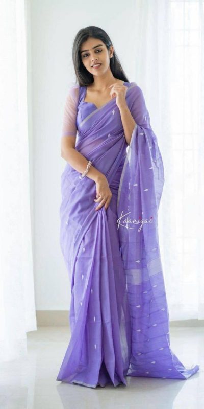 KP 5063 Purple Color Soft Lilan Cotton Rich Pallu & Jacquard Work Saree Casual, Wedding, Festive, Events . Expected Delivery 4-6 Working Days @1349/- only