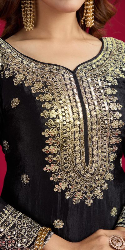 | Fabrics | Top :- :Pure Heavy Chinnon Silk With Embroidery And 5mm Sequence Work Sleeves :- Chinnon Silk With Embroidery And 5mm Sequence Work With Full Sleeves Dupatta :-:Pure Heavy Chinnon With Four Side Lace BorderSharara inner :Heavy Micro CottonSharara Palazzo Fabrics: Pure Heavy Chinnon Silk With 5mm Embroidery Sequence Work With Fully Flair Top Inner :-Heavy Micro Cotton Top Length :- 36-37Inch Size:- Free Size Semi Stitched |