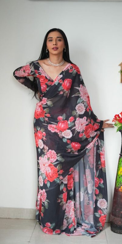 SC 263 Black Color Pure Soft Georgette Silk Design All Over Saree , Party Wear, Events, Festivals Expected Delivery 4-6 Working Days 1599/-