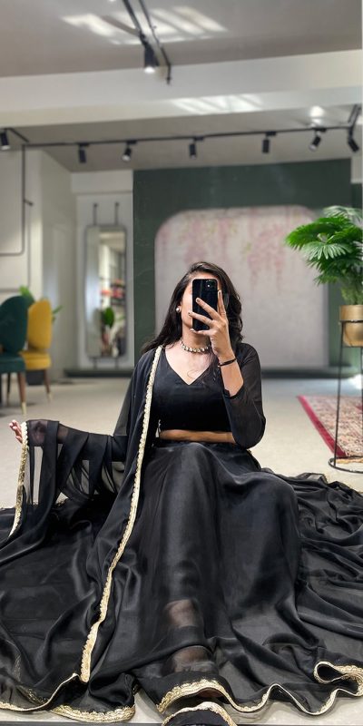 Grand Black Color Rangoli Silk Plain Lace Border Lehenga Choli