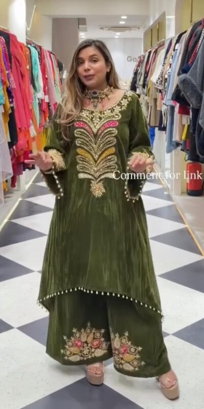 Green 9000 Velvet Lace Embroidery Work Salwar Suit