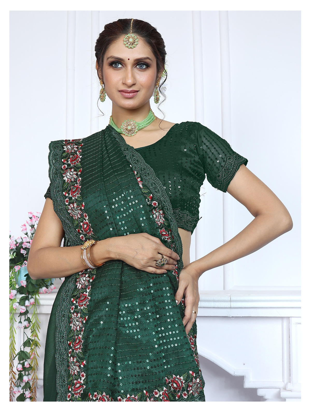 Saree Work : Heavy Embroidery Thread Zari with Coding & 3mm + 5mm Sequins Saree Work