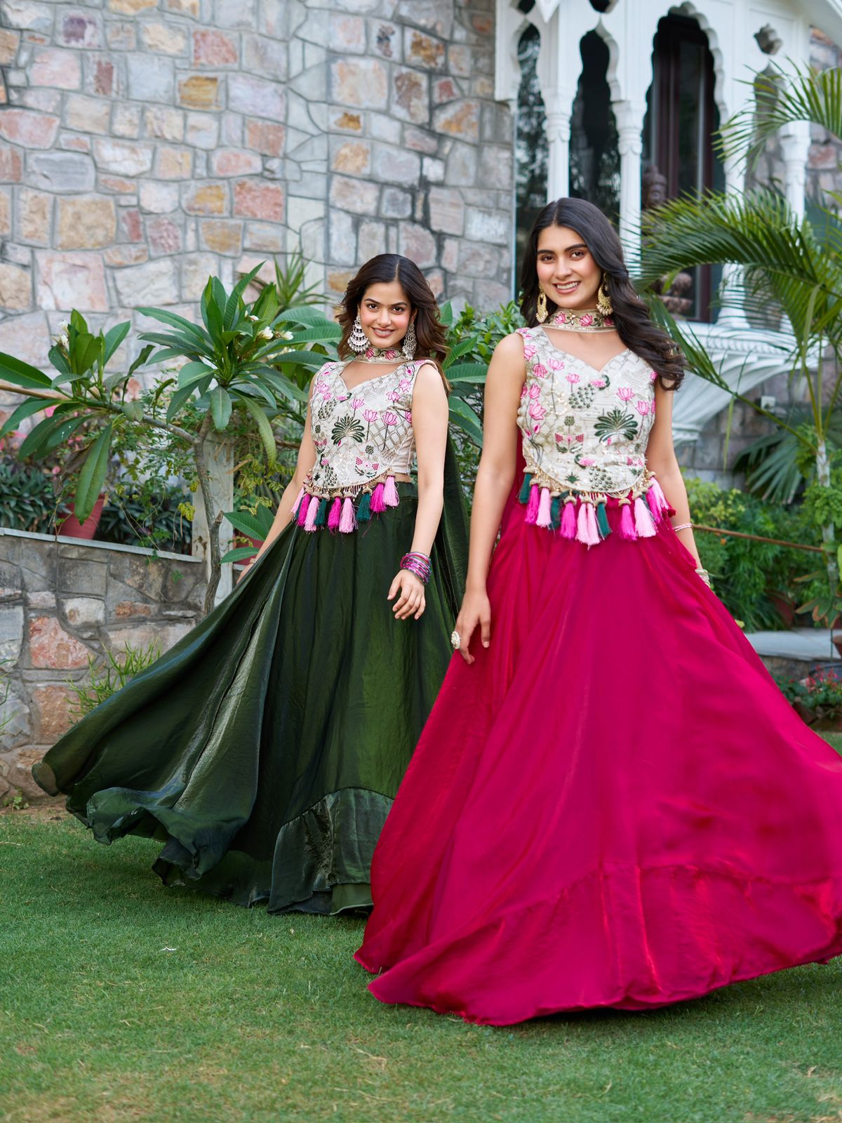 Green Simar Tissue Silk Thread Work Lehenga Choli