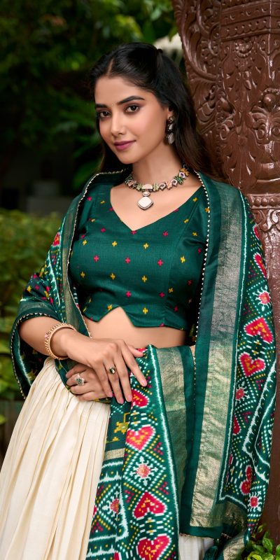 Green Tasar Silk With Gotta Patti Lehenga Choli