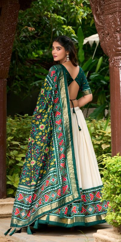 Dupatta Work : Patola Print with Gotta Patti Lace Border Also Comes With Both Side Tassels
