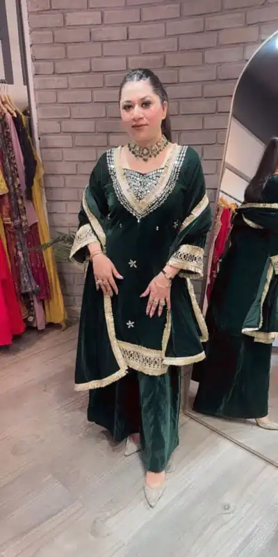 Green Velvet Mirror Embroidery Work Salwar Suit