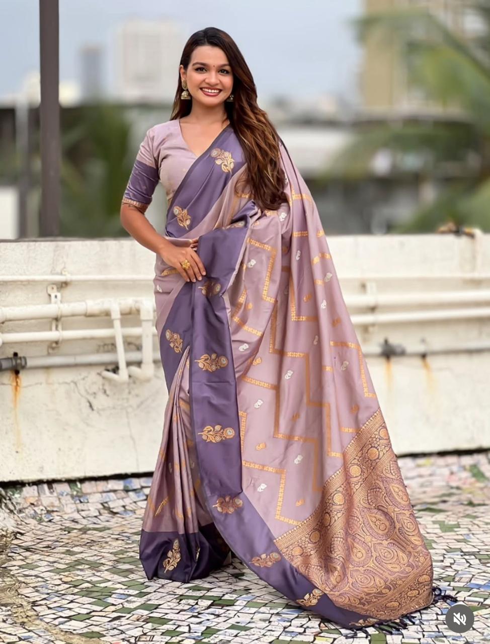 Lavender Banarasi Silk Weaving Zari Work Saree