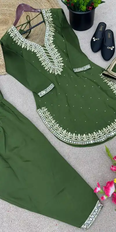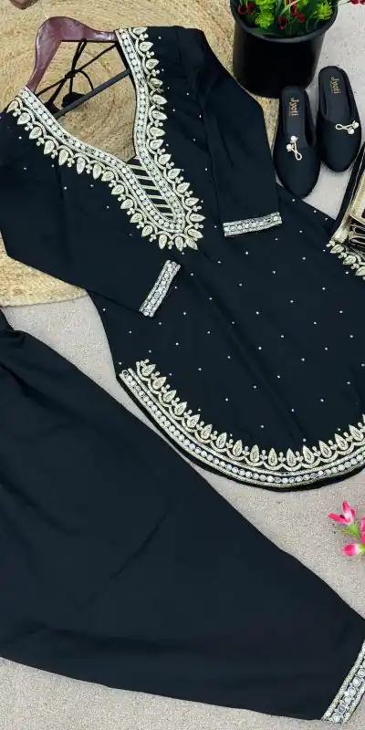 Sharara Fabrics :Heavy Chinon silk With 5mm Embroidery Sequence Work and Cencas farchi bottom