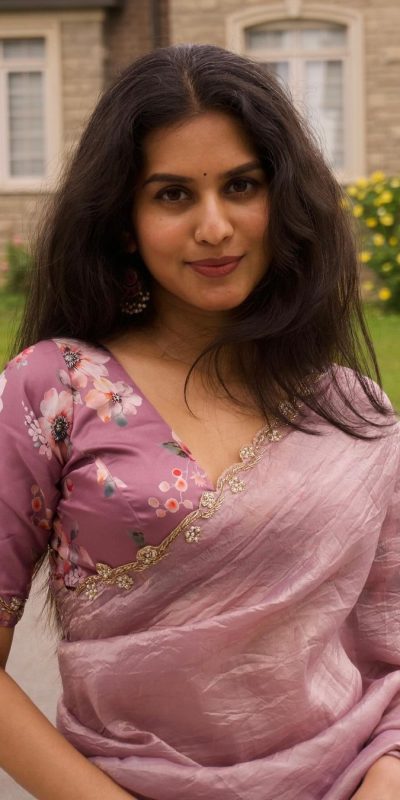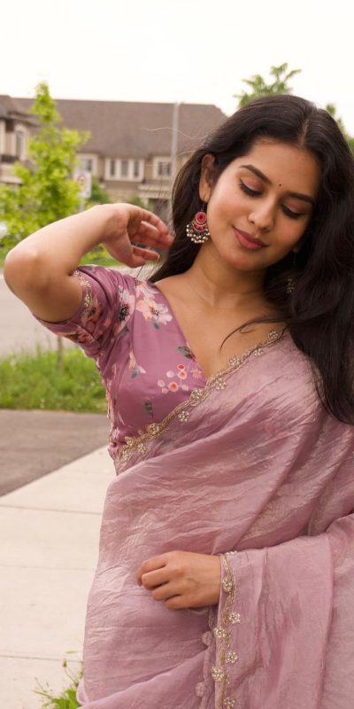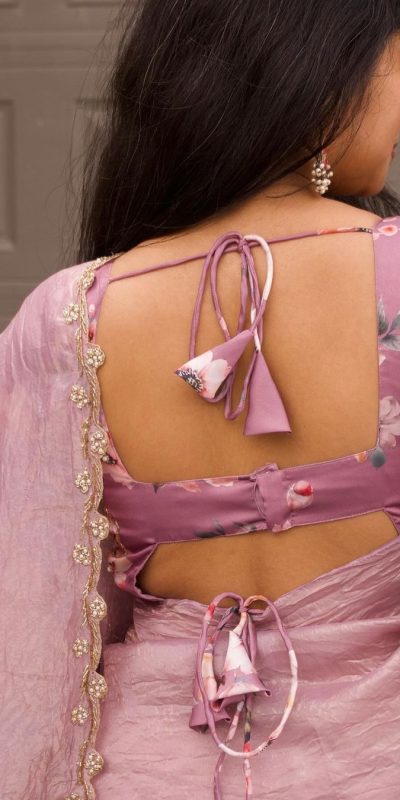 Blouse work : Digital Flower Print Have Front And Sleeves Handwork.