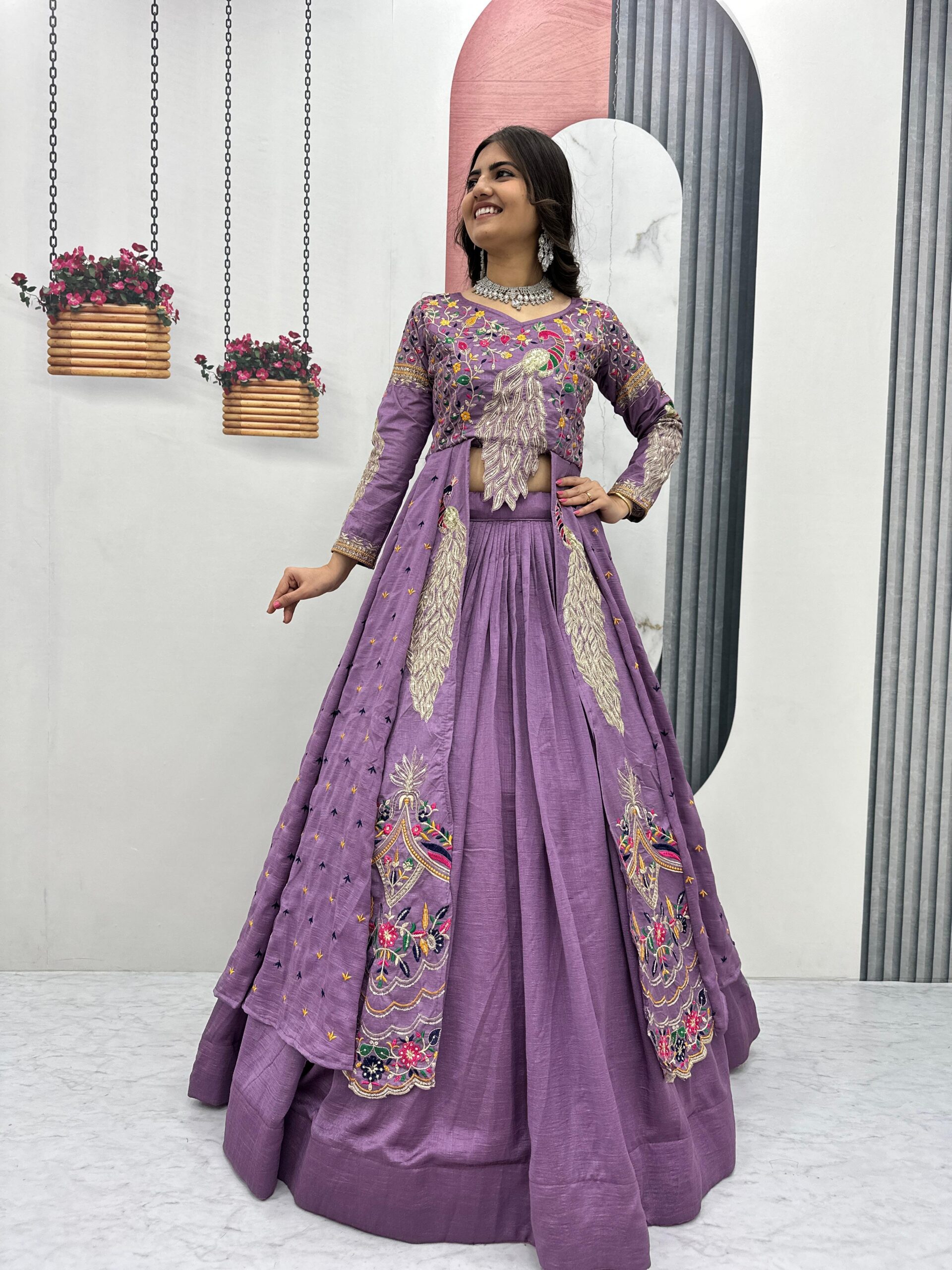 Lavender Vichitra Sequence Work Lehenga Choli
