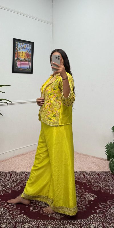 | Fabrics | Koti Fabric:- Chinon Work:- Front Side Full Embroidery Work With Moti Lace Work fancy Lace /Size : Free Size Semi Stitched Sleeve :- 18 Inch Height :- 25 InchBlouse Fabric :- Chinon Work :- Embroidery Lace Work / Free Size Palazzo Fabric :- Chinon Work :- Embroidery Lace At Bottom/full Stitch Up To 42 Inch With Elastic Height :- 40 Inch |