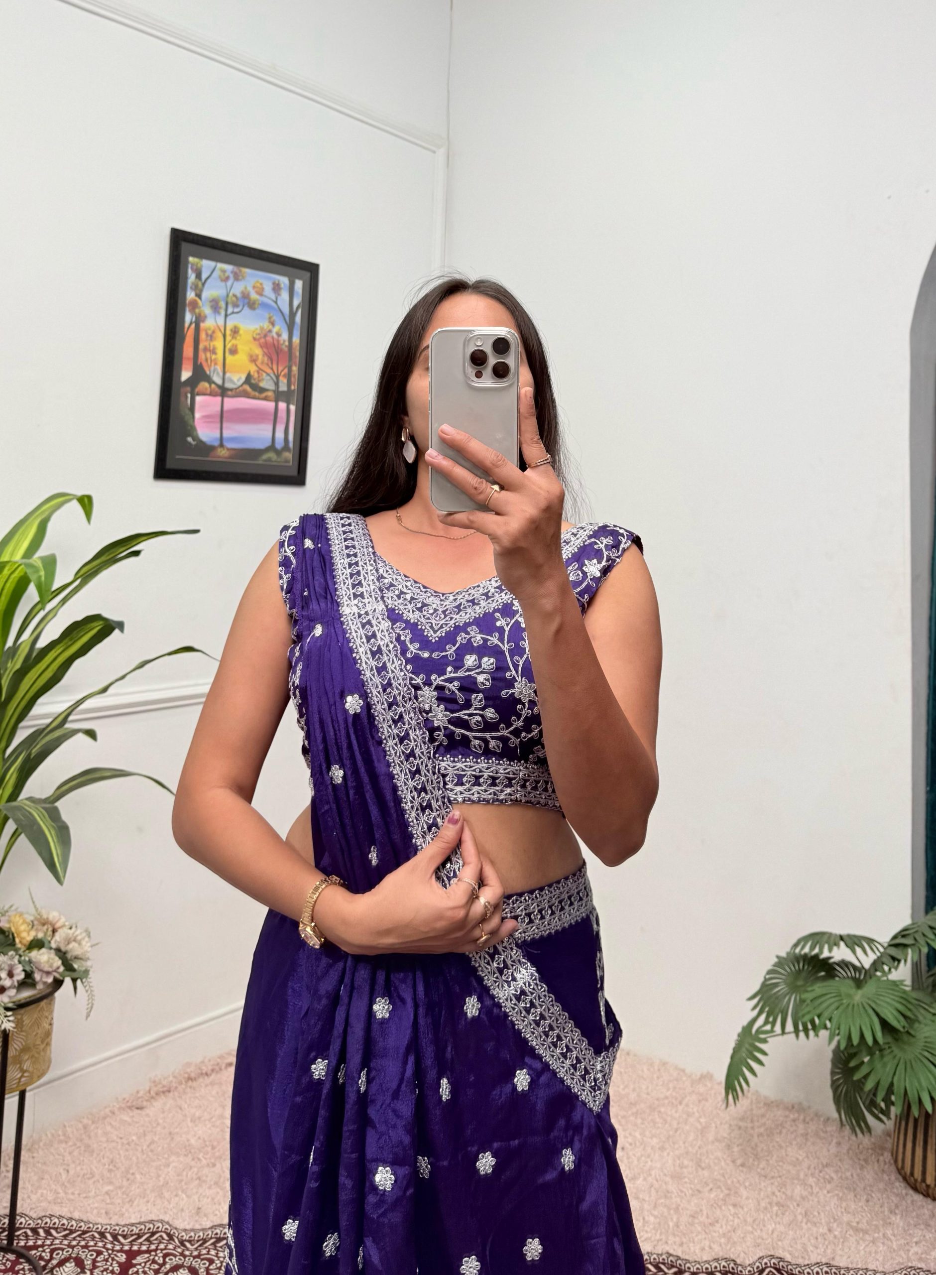 Fabrics | Palazzo Fabric :- Chinon Work :- Embroidery Work Waist :- Elastic Belt Up To 44 Inch Length :- 40 InchBlouse Fabric :- Chinon Work :- Full Embroidery Work Stitched Free Size Semi StitchedDupatta Fabric :- Chinon Work :- Full Embroidery Work, Fancy Pattern & Pleats With Lace |