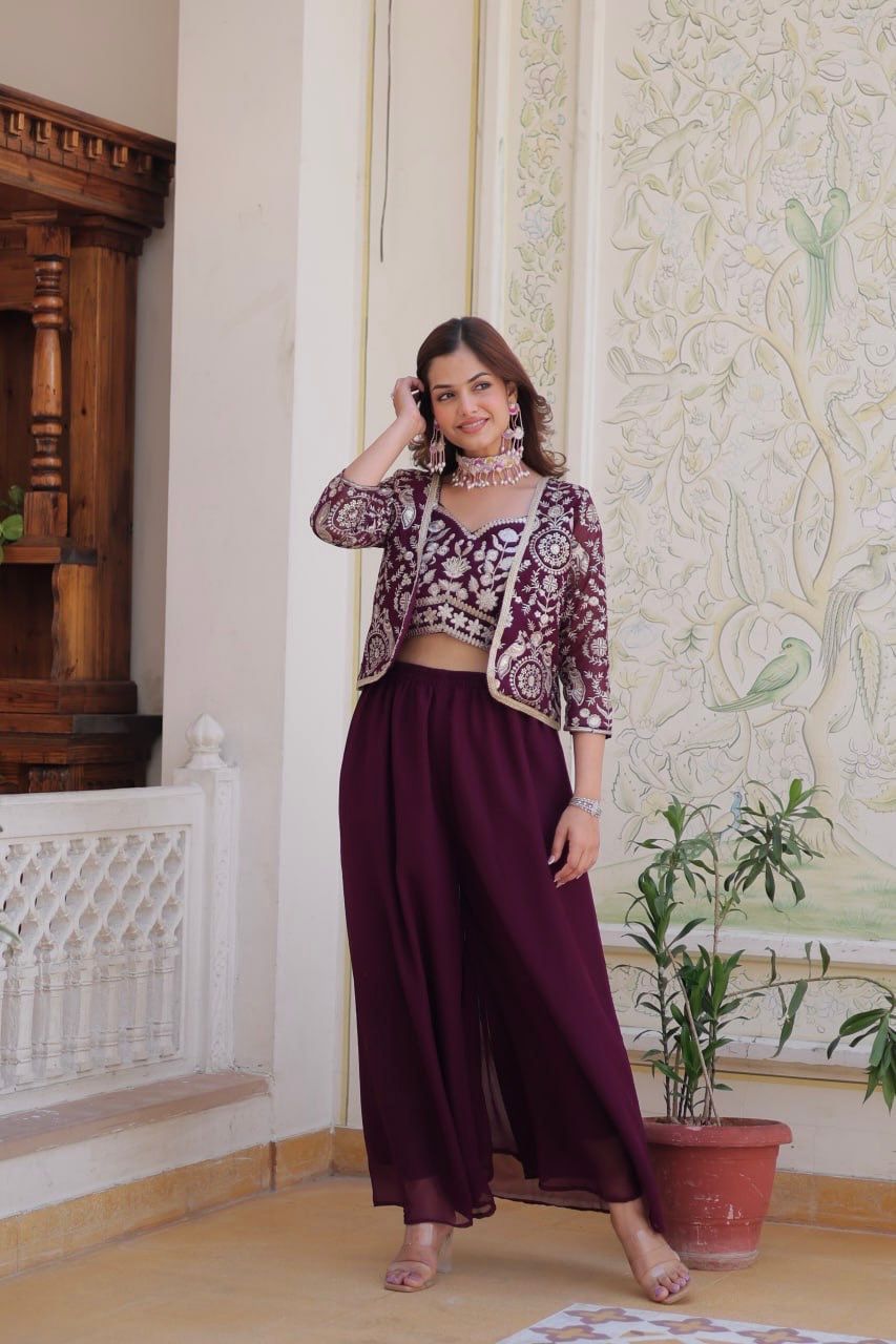 Fabrics | Koti Fabric:- Fox Georgette Work:- Heavy embroidery Lace Work Inner:- Micro CottonCholi Fabric :- Heavy Fox Georgette Work :- Heavy sequence Embroidery Work Inner:- Micro Cotton Size:- Free Size Sami stitched Fully StitchedPalazzo Fabric:- Heavy Fox Georgette Inner:- Micro Cotton |