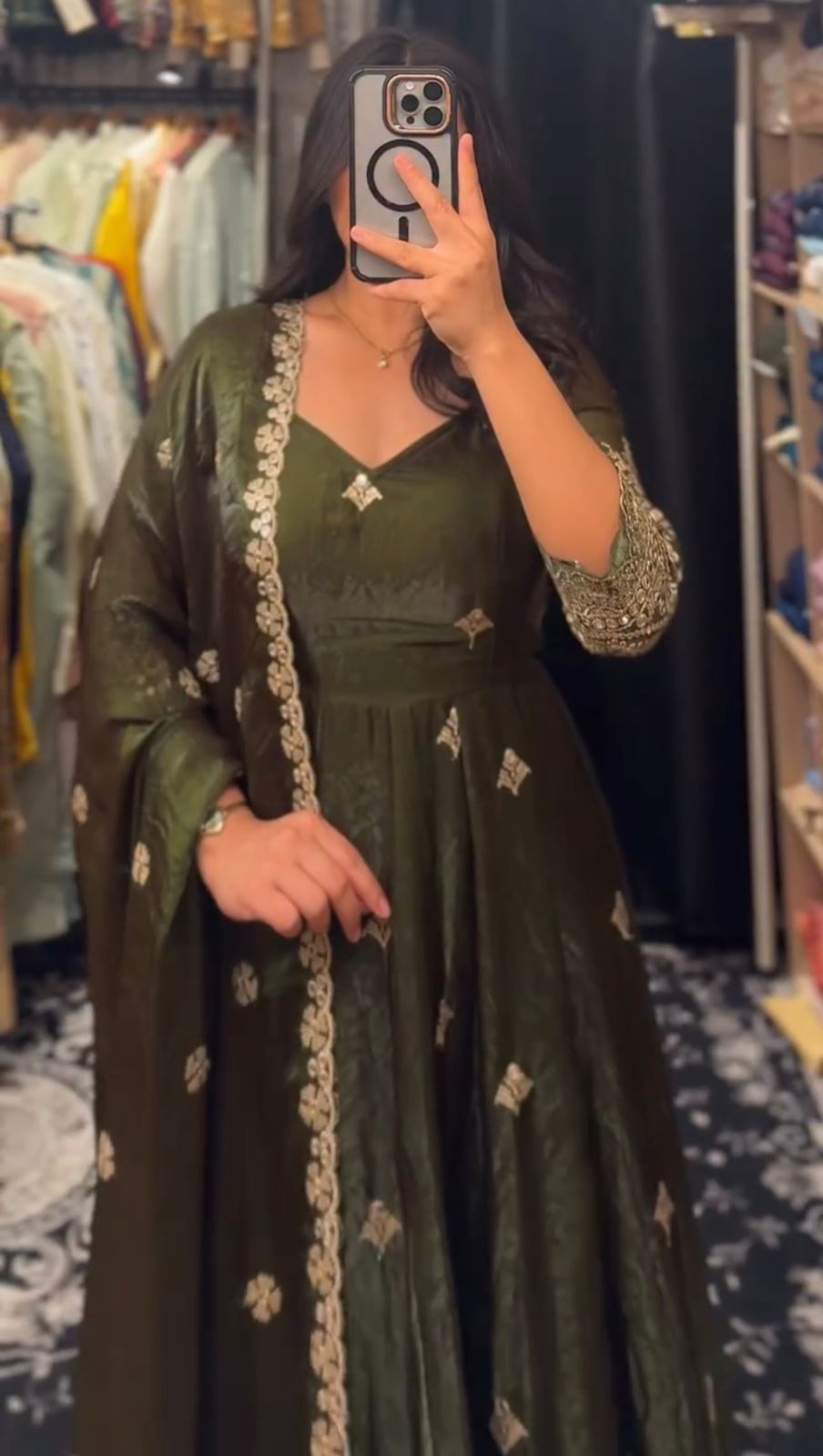 Mahendi Fendy Silk Sequence Lace Work Gown