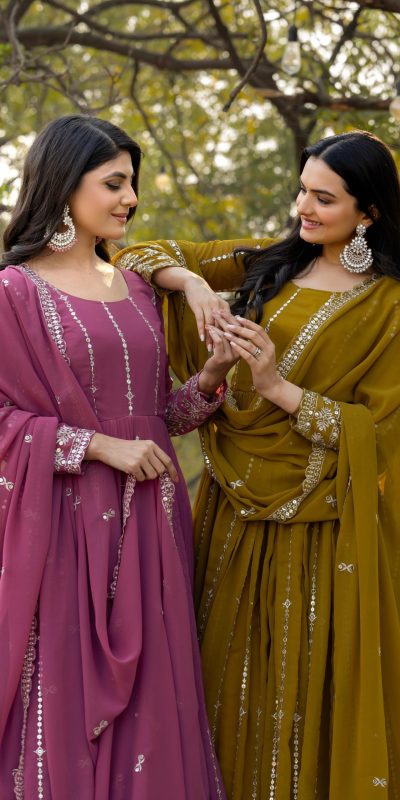 Gown Fabric:- Fox Georgette Work:- Heavy 7 mm sequence Embroidery Work Inner:- Micro Cotton Flair:-3.50 mtr Size:- Free Size Semi Stitched(Fully Stitched) Dupatta |