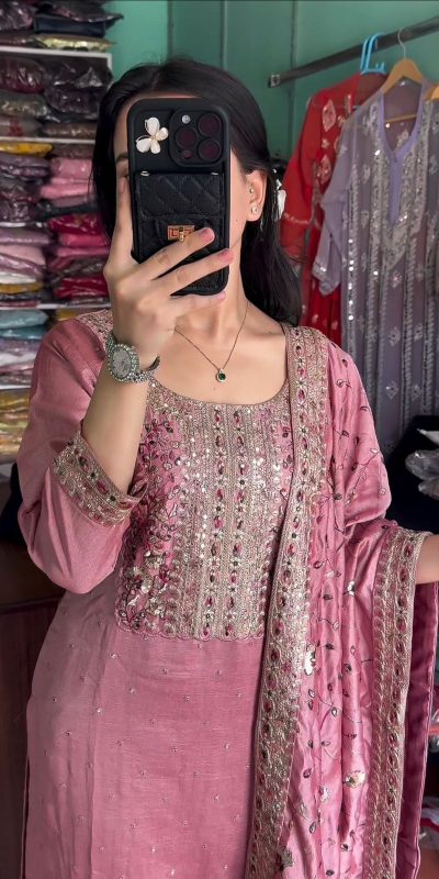 AD 163 Pink Color Chinon Silk Embroidery Work Sharara Suit Casual, Wedding, Party, Festive, Events Etc. Expected Delivery 4-6 Working Days @2249/-