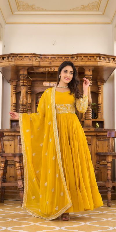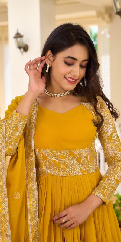 Ram 018 Yellow Color Fox Georgette Embroidery Sequence Gown Casual, Wedding, Party, Festive, Events Etc. Expected Delivery 4-6 Working Days @1999/-