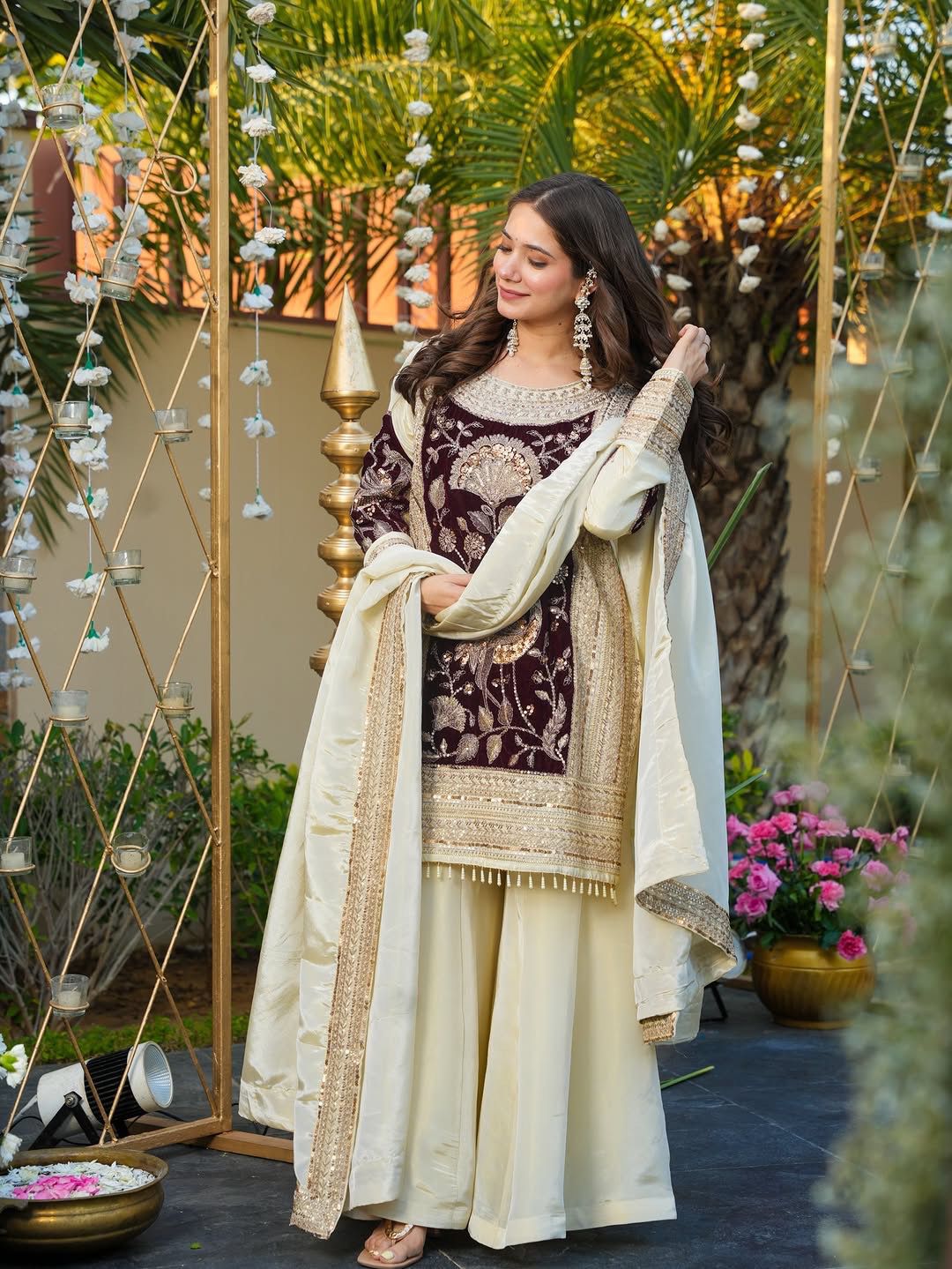 25 reviews for Maroon Glass Organza Silk Sequence Work Salwar Suit