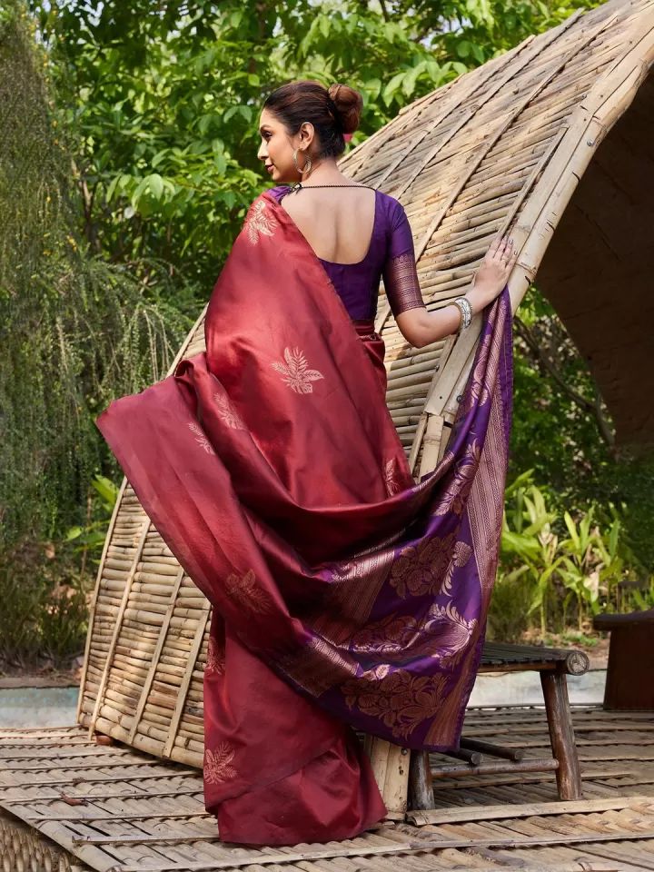 Maroon Lichi Silk Lace Border Saree