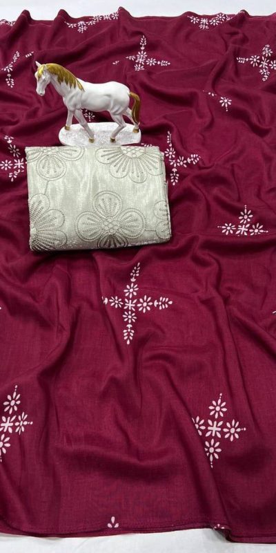 Maroon Natural Silk With Thread Embroidery Saree