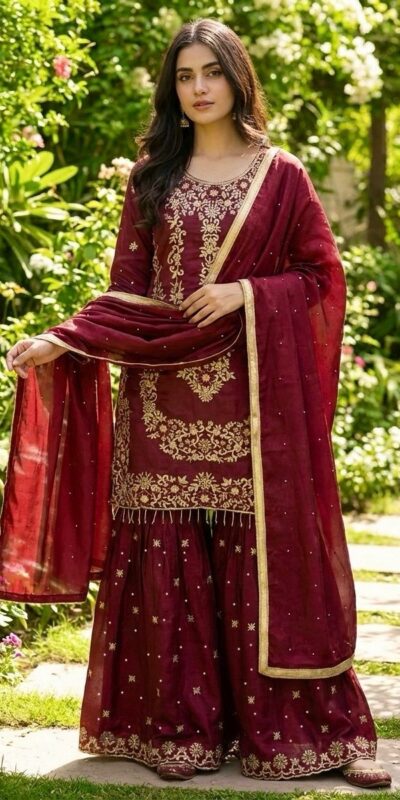 Maroon Organza Silk Sequence Work Salwar Suit