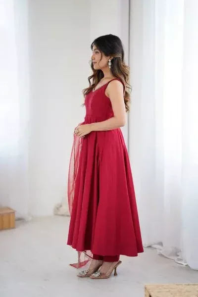 Maroon Roman Silk Chanderi Mirror Work Gown