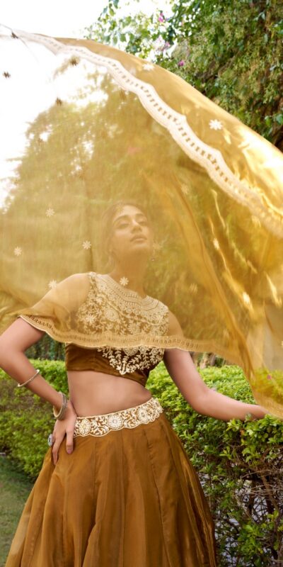 1 Lehenga :: 1 Blouse :: 1 Dupatta :: Drawstring with Zip |