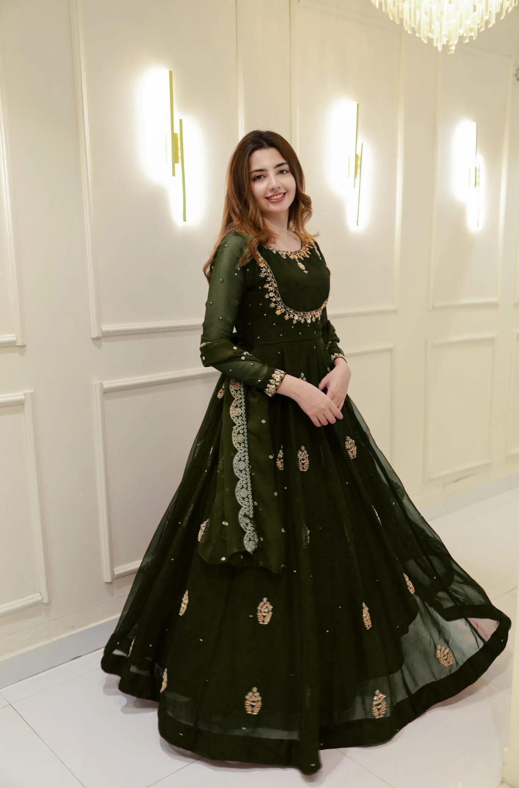 LG 2006 Mehendi Georgette Gown Perfect for Wedding, Party, Engagement, Diwali, Sangeet . Exclusive Offer ₹1999. Delivery 4-6 Working Days. Shop now. | Bollywood Gowns, Creative Gowns, Designer Gowns, Embroidered Gowns, Gowns, Party Wear Gowns