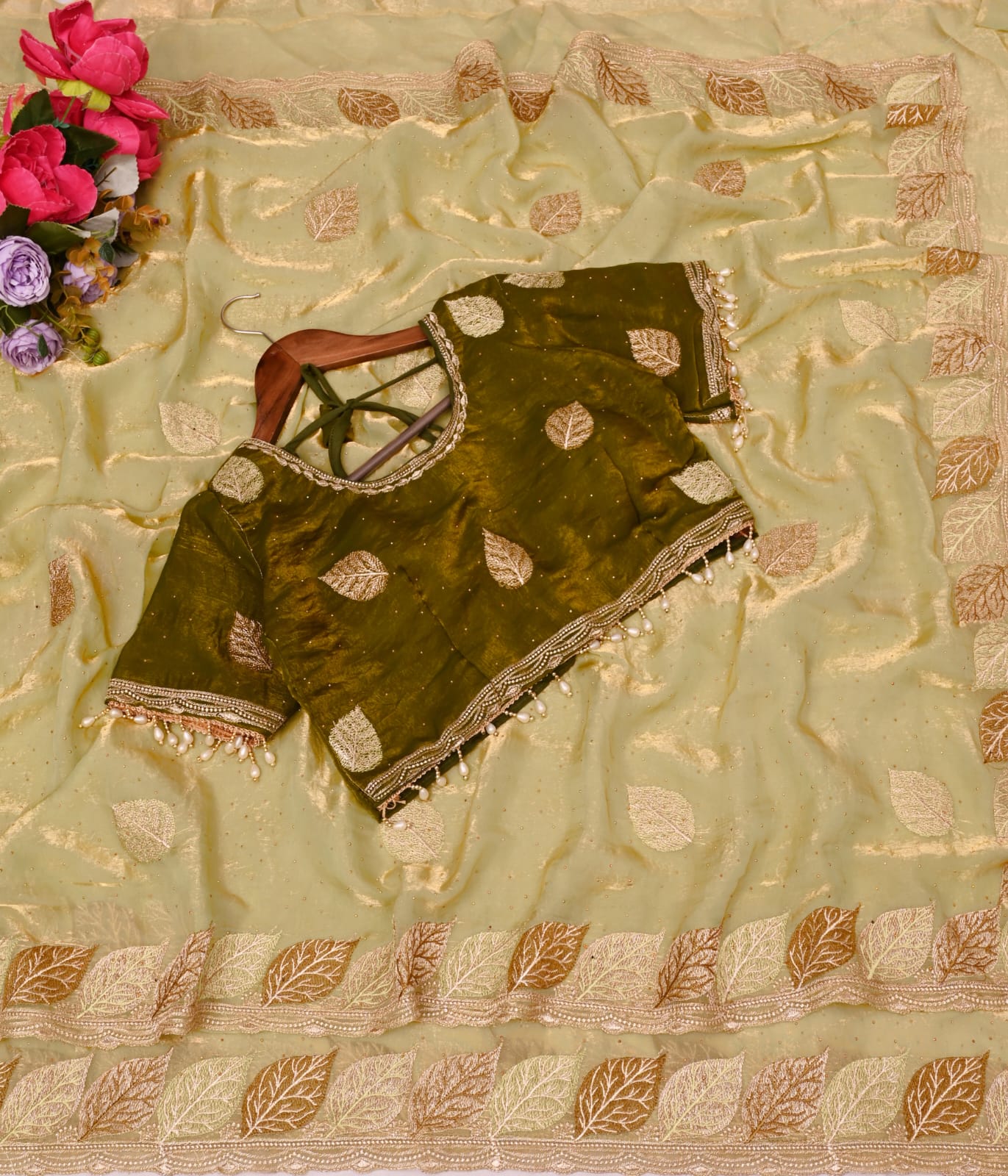 Mehendi Soft Fandy Silk Embroidery Lace Work Saree