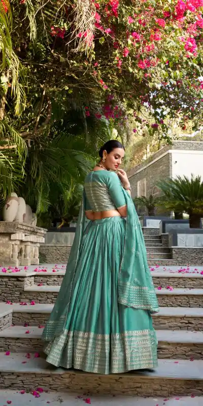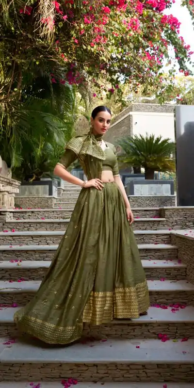 Mehndi Chanderi Plain With Zari Weaving Work Border Lehenga Choli
