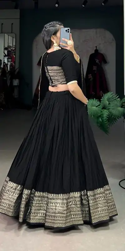 Lehenga : Pure Chanderi Inner :Micro Cotton Work : Plain Zari Weaving Work Length : 42+ Inch Type : Semi Stitched Free SizeFlair : 4 MeterLehenga Waist :SUPPORTED UP TO 42 Lehenga Stitching : Stitch With Canvas And Full Inner Lehenga Closer : Drawstring With Zip Length : 41Blouse : Pure ChanderiWork : Zari Weaving Work With LaceType : Un-StitchedBlouse Length : 0.90 MeterDupatta : Pure ChanderiDupatta work : Sequins Embroidery Work Buttes With Lase Border Length : 2.5 M |
