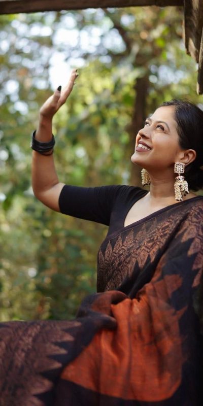 KP 5053 Black & Orange Color Soft Lilan Slab Weaving Work Saree Casual, Party Wear, Wedding, Events Etc. Expected Delivery 4-6 Working Days @1499/-