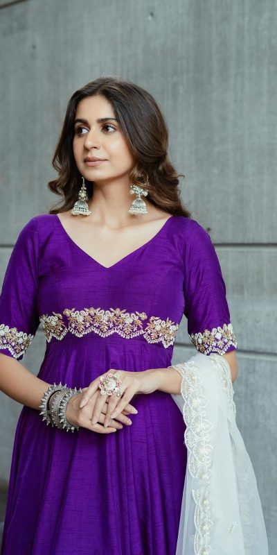 Mesmerizing Violet Color Phantom silk Thread Work Anarkali Suit