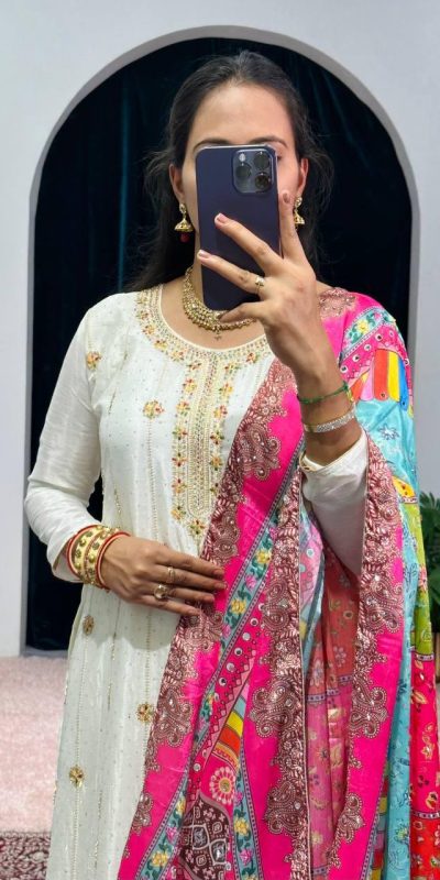 ST 1046 White Color Chinon Embroidery Work Salwar Suit Casual, Wedding, Party, Festive, Events Etc. Expected Delivery 4-6 Working Days @2399/-