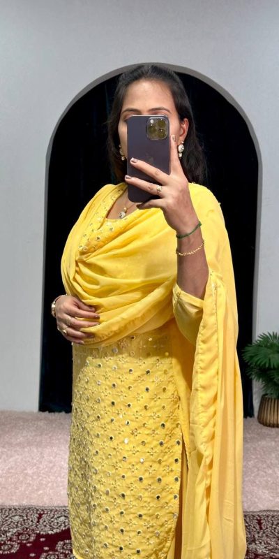 | Fabrics | Top : Faux Georgette Work:- Embroidery Work Inner : Micro Cotton Pant: Patiyala :-Faux Georgette Height :- 38 inch Dupatta: Faux Georgette Work :- Embroidery Lace Border Work Lenght :- 2.5 Meter |