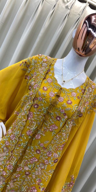 Mustard Faux Georgette Embroidery Work Salwar Suit